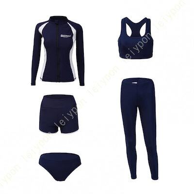 水着 レディース 5点セット 体型カバー 長袖ラッシュガード ラッシュレギンス ショートパンツ スポーツブラ セット お腹が隠れる カバーアップ