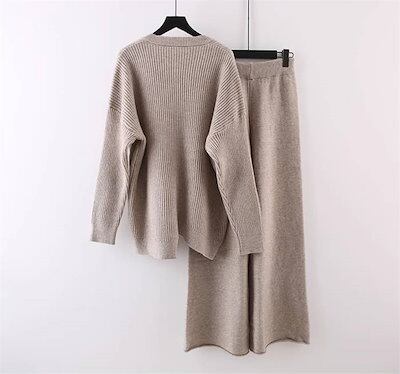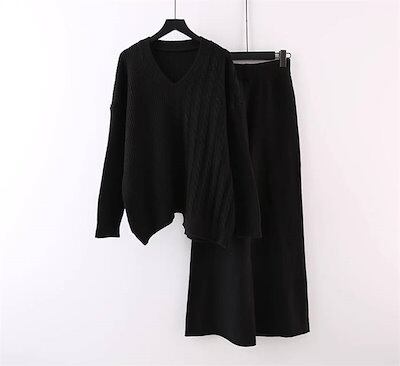 ニット セットアップ レディース 秋冬 冬 春 セットアップ ニットセーター プルオーバー ワイドパンツ ニットセットアップ ニットパンツ ロングパンツ 長袖 ゆったり リブニット カジュアル 大きい
