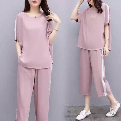 23 新作 おしゃれ 流行り 気質 二点セット 大きいサイズ ゆったり カジュアル 半袖 Tシャツ ワイドパンツ セットレディースセットアップ涼しく楽ちんセットアップ ウェア 日焼け止め
