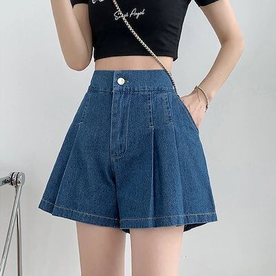 ひんやりボトムス ジーンズレディースデザイナーハイウエスト大きいサイズゆったり細身ストレートレッグワイドレッグプレスドクリースカジュアルバラエティショートパンツ