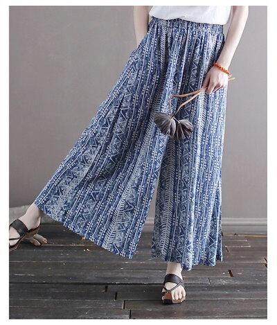 ワイドパンツ パンツ レディース ガウチョパンツ パンツ ワイドパンツ ボトムス スカーチョ ガウチョ スカンツ レディース エスニック 花柄 リネン ガウチョパンツ 大きいサイズ ロングパンツ ゆっ