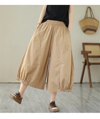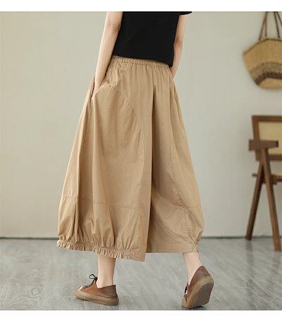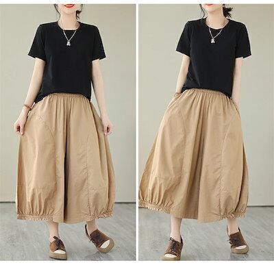 ワイドパンツ 夏 レディース パンツ ワイドパンツ バルーンパンツ ウエストゴム サルエルパンツ 七分丈パンツ 7分丈 ロングパンツ ボトムス ポケット付き カジュアル風 ゆったり 大きいサイズ 体型