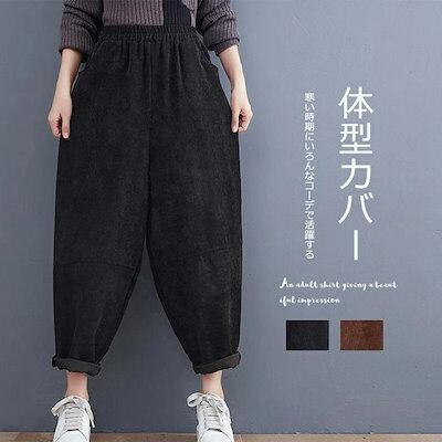 バルーンパンツ ワイドパンツ レディース コーデュロイ 秋冬 サーカスパンツ 冬 ワイド ボトムス パンツ ワイド 大きいサイズ コクーン ウエストゴム ロングパンツ サルエルパンツ ハロンパンツ ハ