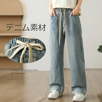 ワイドパンツ デニムパンツ レディース ワイド ロングパンツ 長ズボン デニム ボトムス パンツ ロング丈 ガウチョパンツ 大きいサイズ ロングパンツ ガウチョ ハイウエスト 体型カバー 着痩せ 落ち
