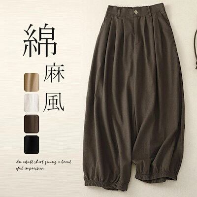 バルーンパンツ 綿麻パンツ レディース 夏 パンツ ワイドパンツ 大きいサイズ 通気性 リネン風パンツ ワイド ガウチョ ロングパン ハイウエスト 半ゴム式 9分丈 ハロンパンツ ガウチョ カジュアル
