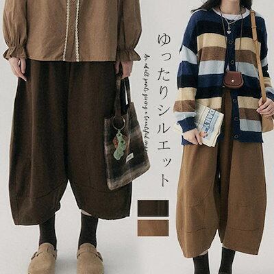 バルーンパンツ レディース ワイドパンツ ロング ウエストゴム コクーンパンツ ポケット付き 美脚 パンツ ボトムス 秋冬 ロング丈パンツ 長ズボン ゆったり 9分丈 体型カバー 大きいサイズ パンツ