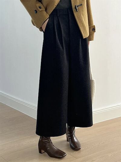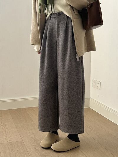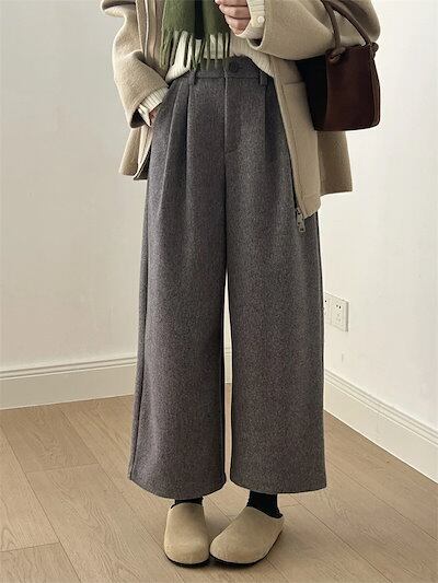 ワイドパンツ ウール調 レディース 秋冬 ラシャ ゆったり パンツ ロングパンツ 秋冬 ラシャパンツ ガウチョパンツ ロング丈 大きいサイズ 九分丈 ガウチョ スラックス 九分丈パンツ 長ズボン 無地