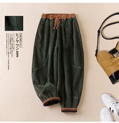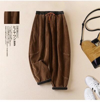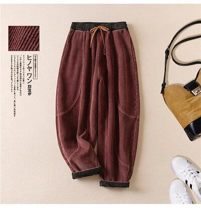 パンツ 裏起毛 ワイドパンツ コーデュロイ 裏起毛パンツ レディース 秋冬 大きいサイズ コーデュロイパンツ ワイド ボトムス 体型カバー バルーンパンツ サーカスパンツ コクーン ウエストゴム ロン