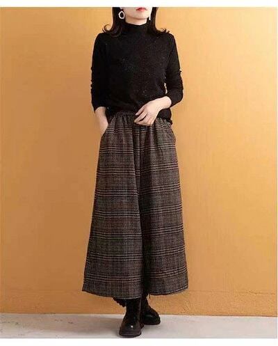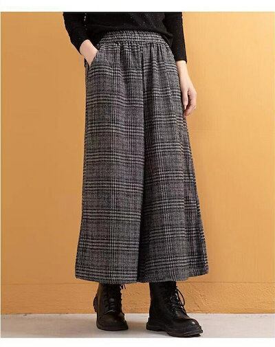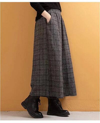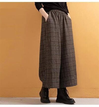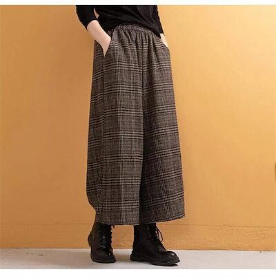 ワイドパンツ レディース パンツ 秋冬 ガウチョパンツ 冬 スカーチョ 厚手 チェック柄 秋冬 ワイド パンツ きれいめ チェックパンツ 大きいサイズ ゆったり 体型カバー 着痩せ ほっこり 暖かい