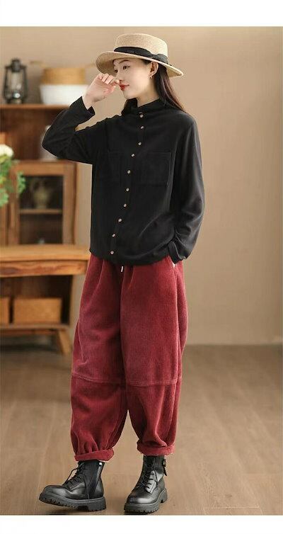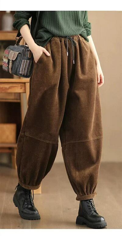 裏起毛 パンツ バルーンパンツ コーデュロイ 裏起毛パンツ レディース 秋冬 大きいサイズ コーデュロイパンツ ワイド ボトムス 体型カバー ワイドパンツ サーカスパンツ コクーン ウエストゴム ロン