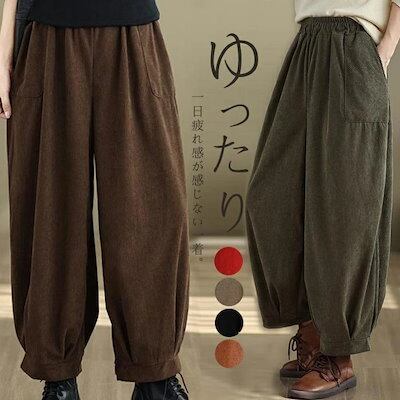 パンツ コーデュロイ レディース バルーンパンツ 秋冬 ワイドパンツ サーカスパンツ 春 ワイド ボトムス パンツ ハロンパンツ 大きいサイズ コクーン ウエストゴム ロングパンツ サルエルパンツ ポ