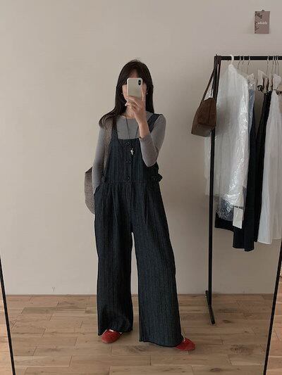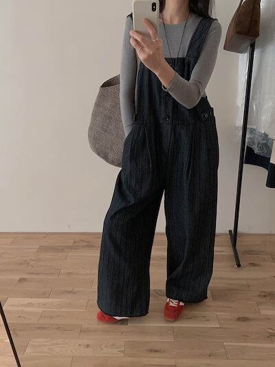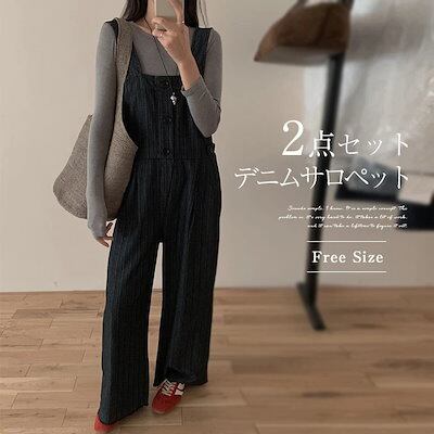 サロペット パンツ レディース ストライプ 二点セット デニムパンツ オールインワン ワイドパンツ 春 秋 きれいめ 着痩せ 大きいサイズ カジュアル おしゃれ 体型カバー ゆったり 女性 お呼ばれ