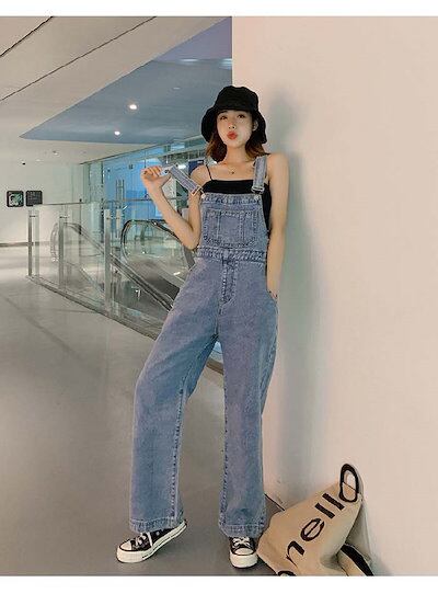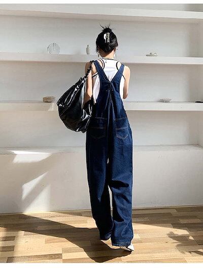 サロペット パンツ デニムパンツ オールインワン レディース ワイドパンツ 春 秋 きれいめ 着痩せ 大きいサイズ カジュアル おしゃれ 体型カバー ゆったり 女性 お呼ばれ 可愛い 無地 おしゃ