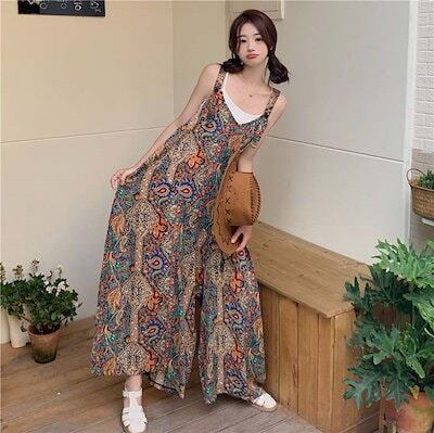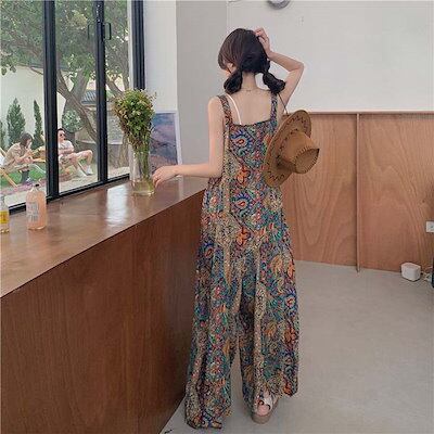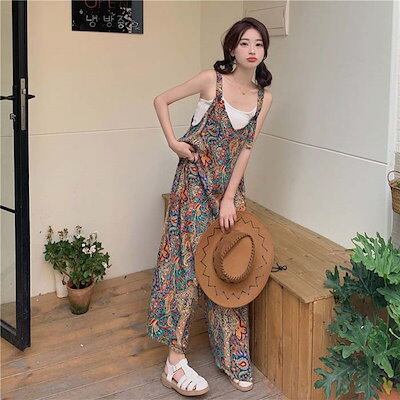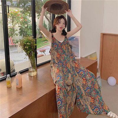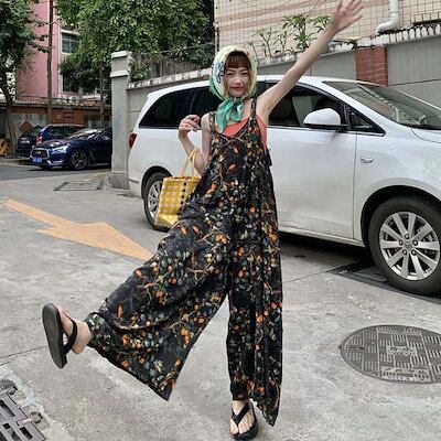 サロペット パンツ オールインワン レディース パンツ ワイドパンツ 花柄 春 秋 夏 きれいめ 着痩せ 大きいサイズ カジュアル 体型カバー ゆったり 女性 お呼ばれ 可愛い 薄手 おしゃれ カジ