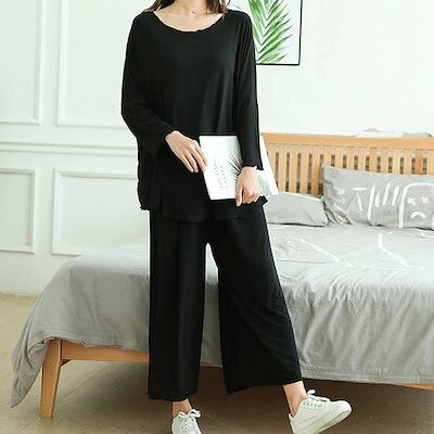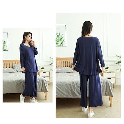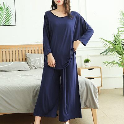 ルームウェア レディース 部屋着 パジャマ 上下セット ナイトウェア ルームウエア 大きいサイズ 秋 春 夏 ワイドパンツ 2XL 3XL 長袖 パンツ 20代 30代 3L 4L 綿 マタニティにも