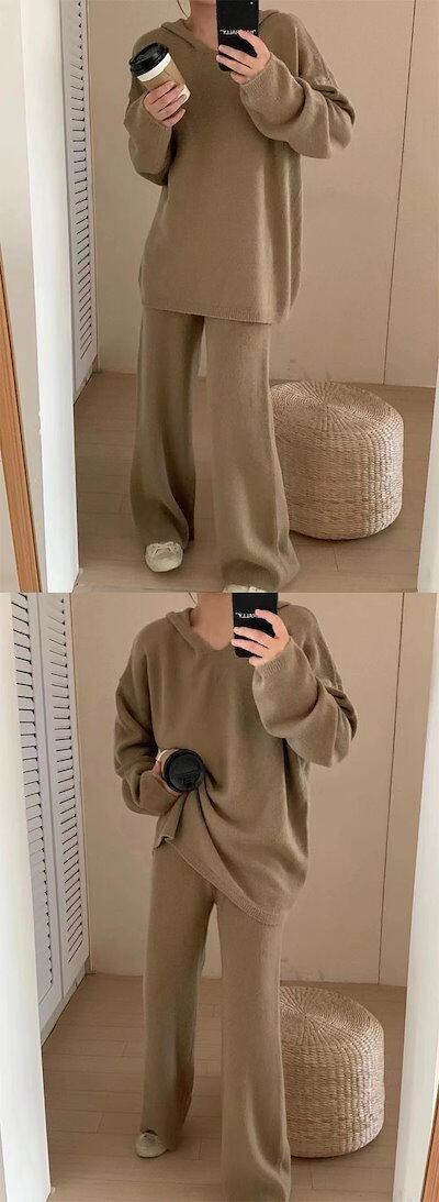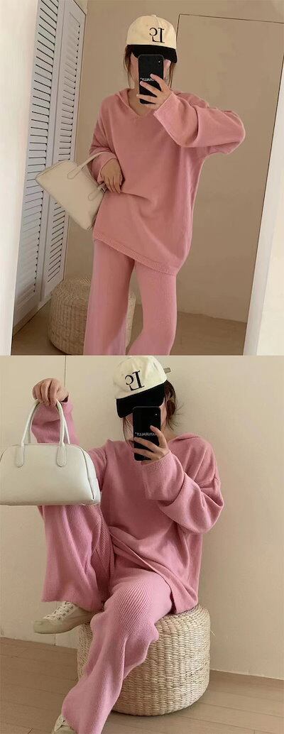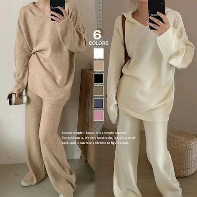 ニットセットアップ レディース 秋冬 ニットセット 2点セット 上下セット セーター&ワイドパンツ ロングパンツ プルオーバー 秋冬セット ハイネック ニットパンツ 大きいサイズ ゆったり カジュアル