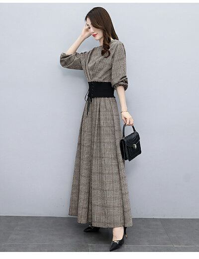 セットアップ レディース 春 ワイドパンツ パンツドレス ブラウス チェック柄 おしゃれ 体型カバー 着痩せ 上品 通勤 二次会 セレモニー 卒業式 30代40代 大きいサイズ 韓国風 おしゃれ 着