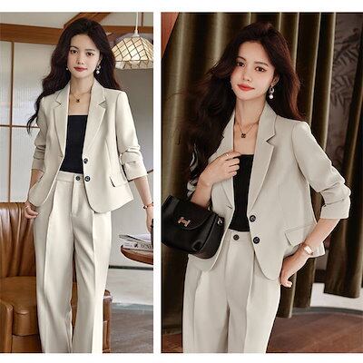 パンツスーツ レディース スーツ Vネック セットアップ ロング丈 ビジネス リクルート オールシーズン 洗える 春 夏 秋 冬 大きいサイズ 上品 入学式 ジャケット ワイドパンツ 2点セット パン
