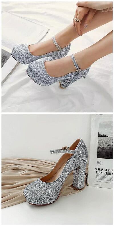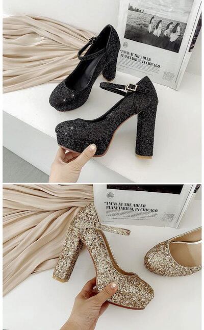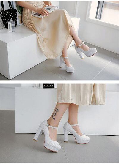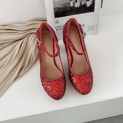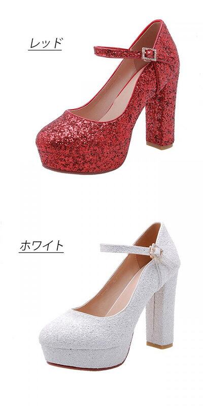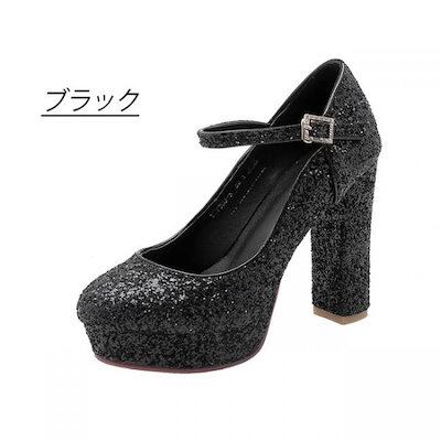パンプス レディース キラキラ ブライダルシューズ 結婚式 ウェディングシューズ アンクルストラップ シンプル きれいめ 美脚 小さいサイズ 大きいサイズ パーティ ハイヒール ぺたんこ 太ヒール ロ