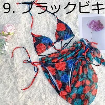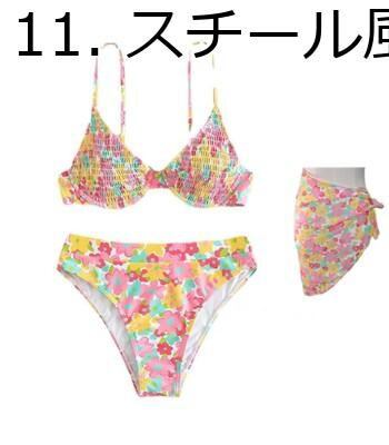 2025春夏新作 水着 レディース ビキニ 花柄 カラフル セクシー スカート 3点セット ヨーロッパ 米国 海辺 休日 レース ホルターネック 韓国 華やか おしゃれ かわいい