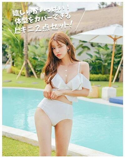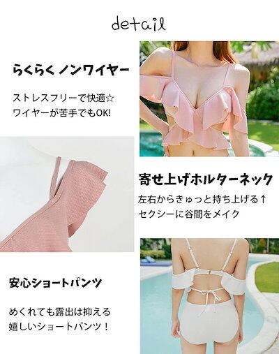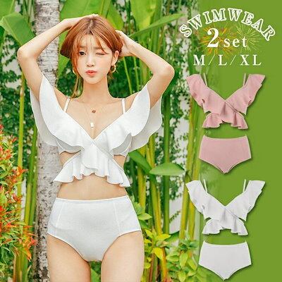 2025春夏新作 水着ビキニ体型カバー可愛いレディースフリル2setオシャレ おしゃれトップスパンツ2点 女子