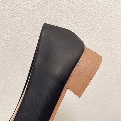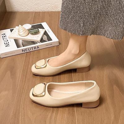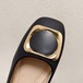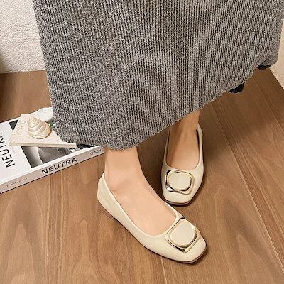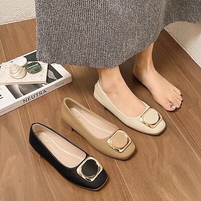 メガ割-ローヒール パンプス フラットシューズ ペタンコ レディース スクエアトゥ 金具付き メタル 柔らかいレザー コンフォート クッション性 婦人靴 妊婦 お出かけ おじ靴 フォーマル 通勤 3色