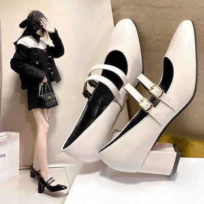 メガ割-ストラップ パンプス スクエアトゥ エナメルパンプス 歩きやすい 黒 痛くない スリッパ フラットサンダル 新作 歩きやすい 新スタイル ハイヒールパンプス ハイヒールサンダル ヒール5CM