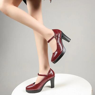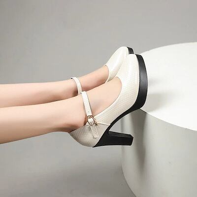 メガ割-ハイヒール パンプス ストラップ 厚底 太ヒール 歩きやすい 大きいサイズ パンプス PU革 ハイヒール 厚底 プラットフォーム ストーム 黒 レディース 通勤 冠婚葬祭 立ち仕事 靴 疲れな
