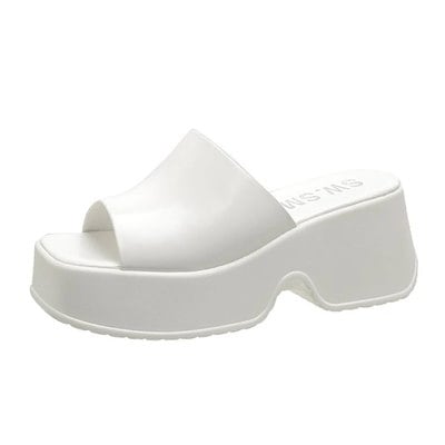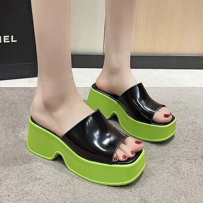 メガ割-スタイルアップヒールパンプス 韓国ファッション サンダル 厚底ハイヒールスリッパ女性25レジャー一言スリッパスクエアヘッドファッションサンダルスリッパ