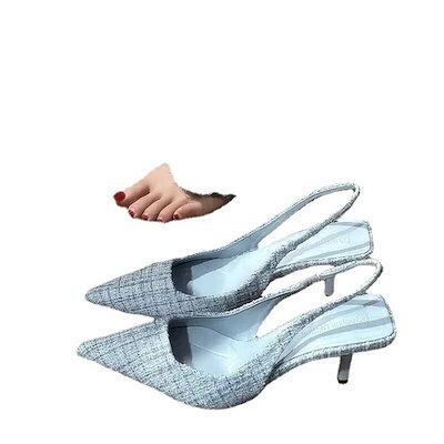 メガ割-スタイルアップヒールパンプス 韓国ファッション サンダル ハイヒールファインヒール尖ったサンダル女性の中空包頭ビッグサイズサンダル