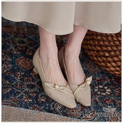 パンプス レディースシューズ ポインテッドトゥ チャンキーヒール 歩きやすい 痛くない 柔らかい 20代 30代 40代 美脚 靴 通勤 結婚式 走れる フォーマル 就活