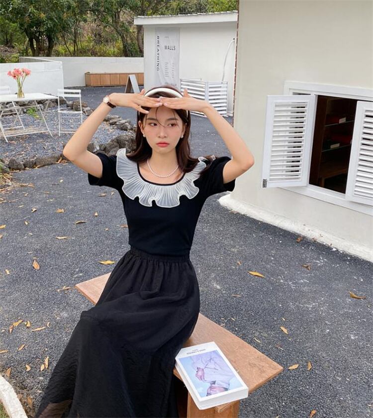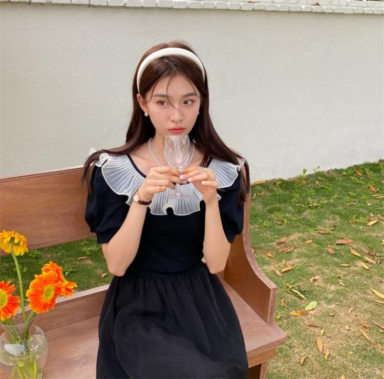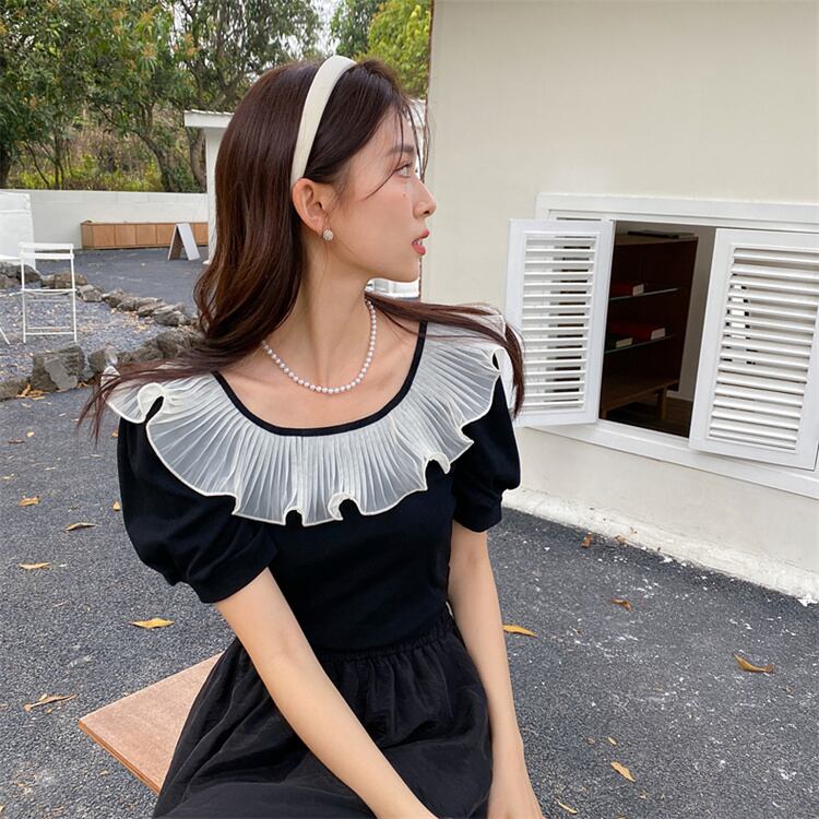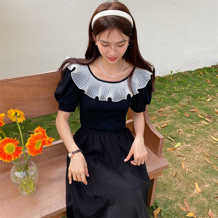 自信を持って フリル パフスリーブ デザインセンス 半袖 Tシャツ 薄手 トップス ジェントルスタイル