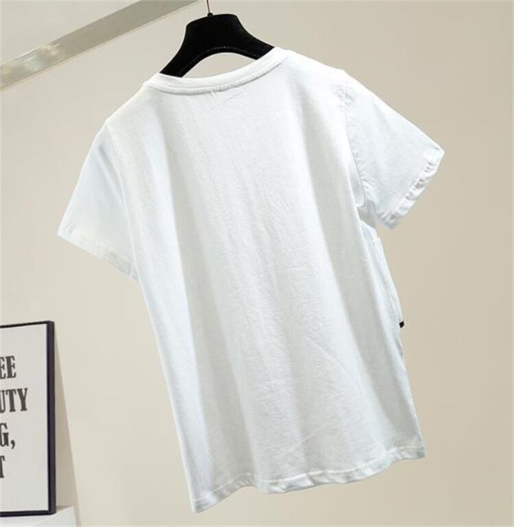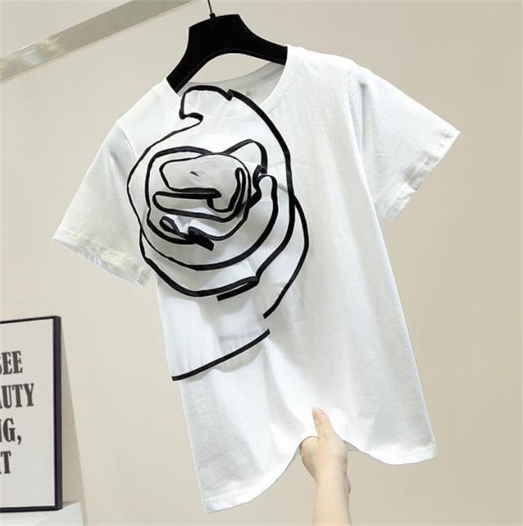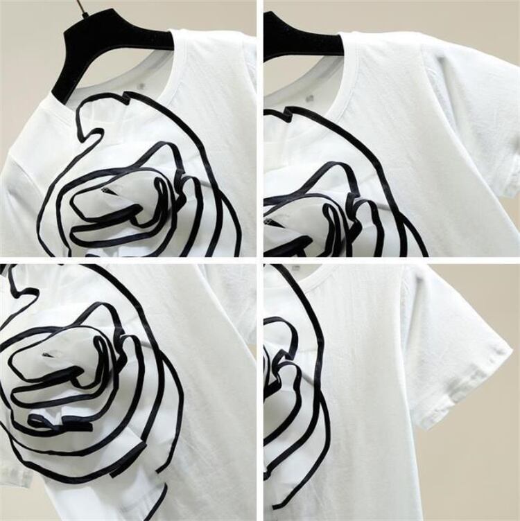 品質自信あり 立体 花飾り 夏 新作 シンプル ライン 半袖 Tシャツ ファッション スリム トップス
