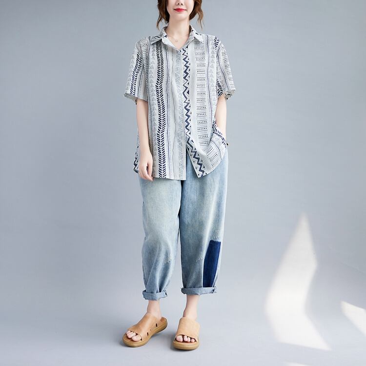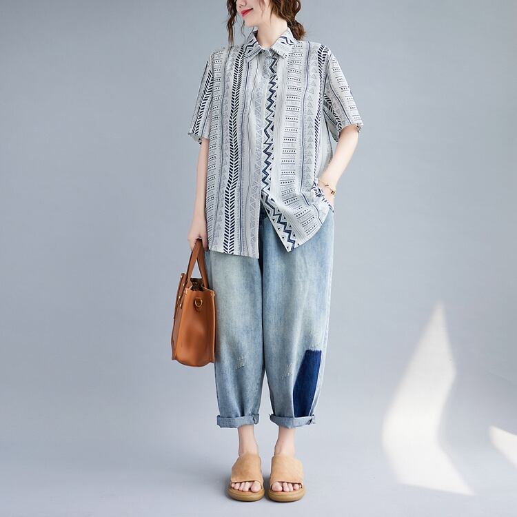 どんなコーデにもピッタリ INSスタイル 幾何学模様 半袖 文学 シャツ カーディガン トップス 日焼け止め服