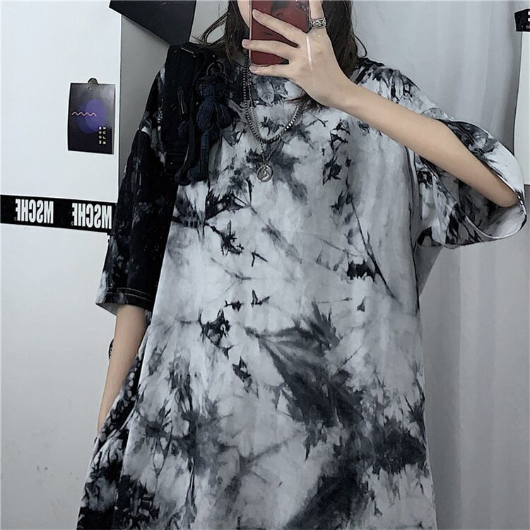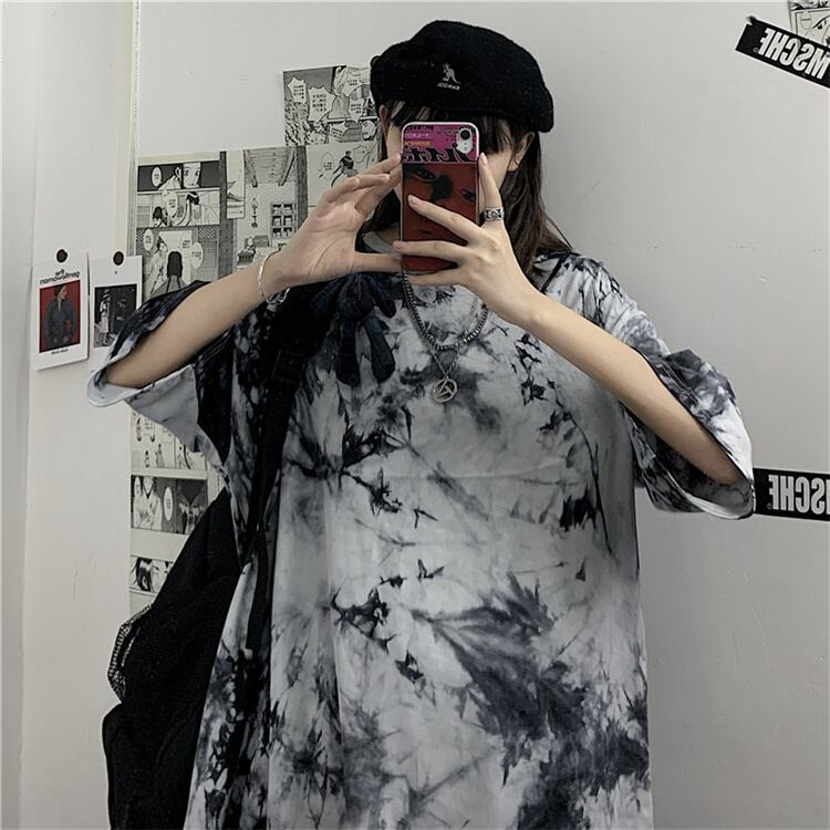 ヒップホップ ストリート トップス 絞り染め Tシャツ 半袖 ファッション 学生 カジュアル カップルウェア