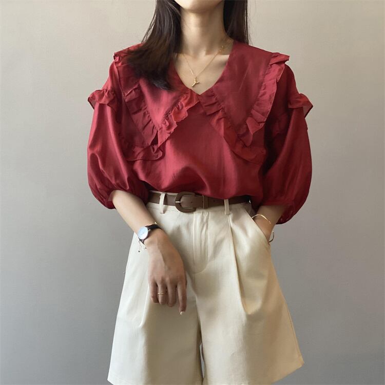 大人気商品売り切れ続出 Vネック スリム 快適である 洗練された シャツ 半袖 薄片 気高い トップス