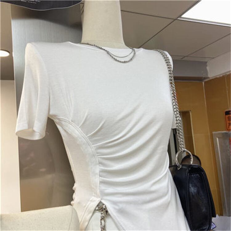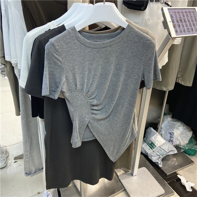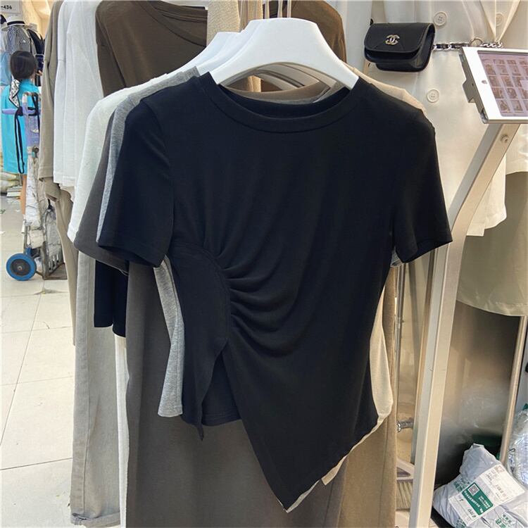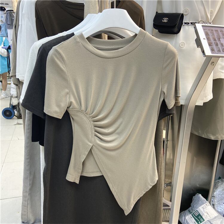 半袖 Tシャツ イレギュラー カジュアル トップス スプリット スリム ストレッチ