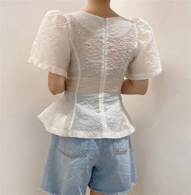 パフスリーブ トップス スリム フォールド 半袖 快適である