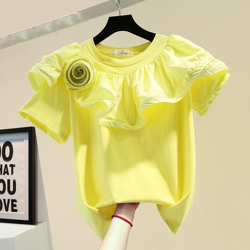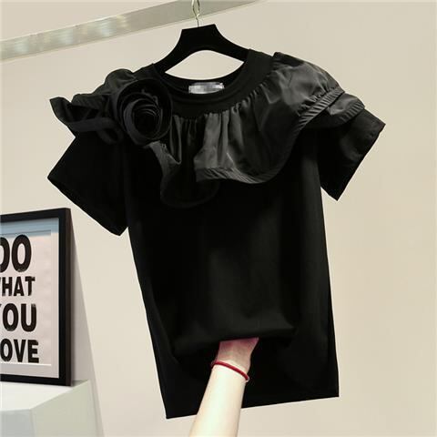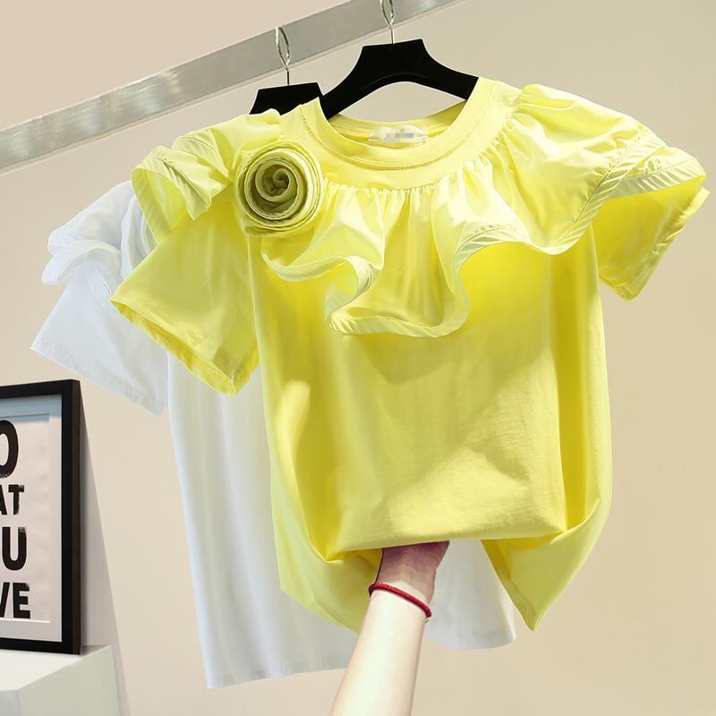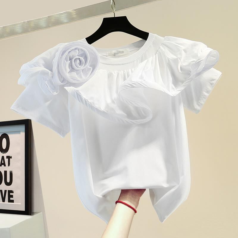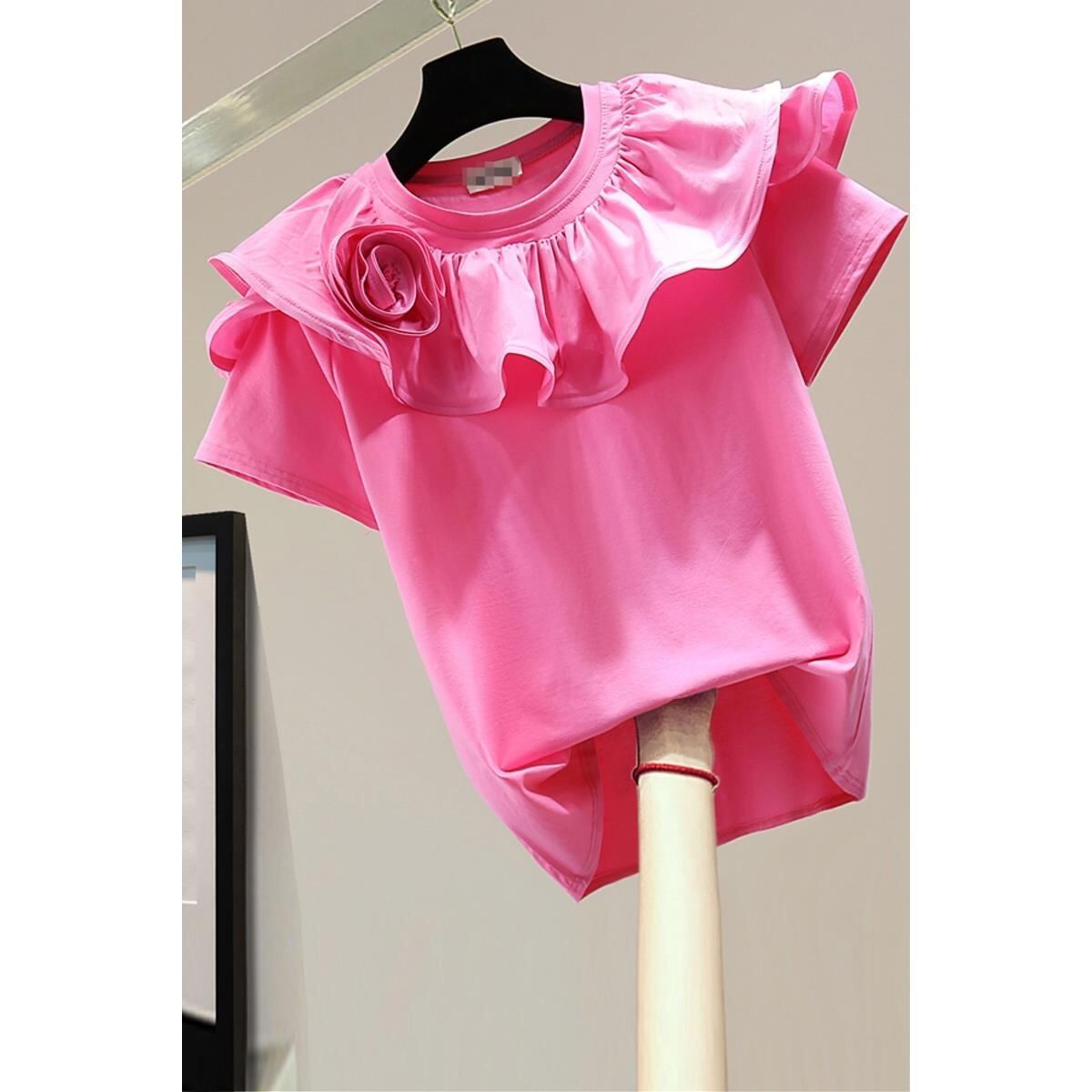 初回送料無料 トップス立体花薄手ゆったりサイズ半袖レディースファショントップスブラウス
