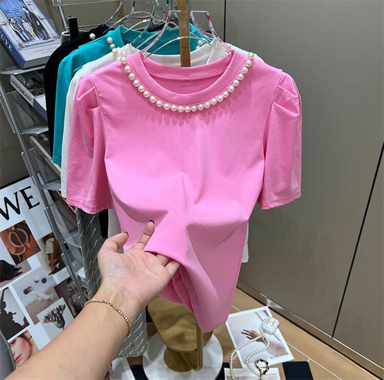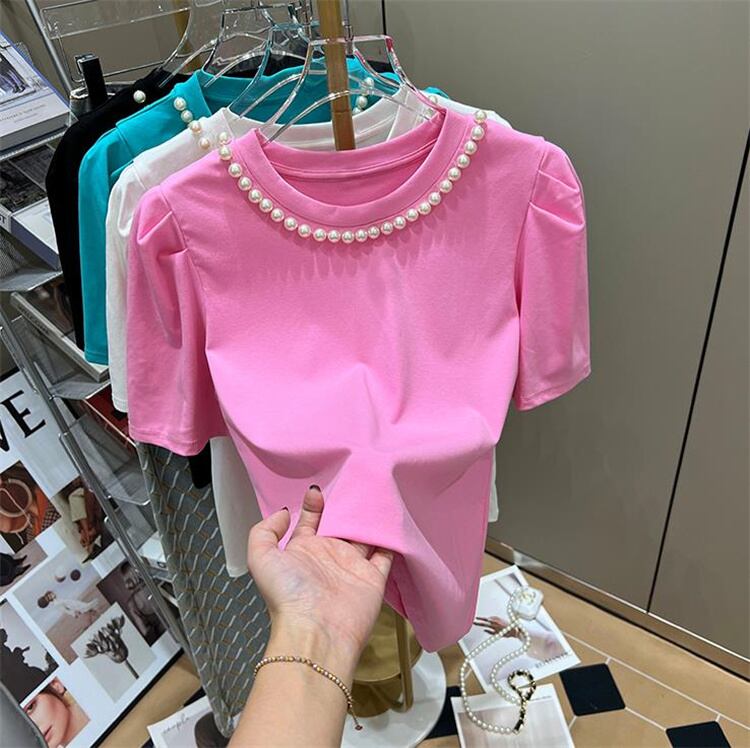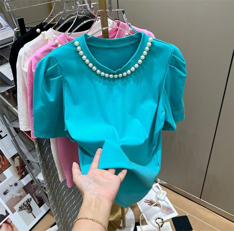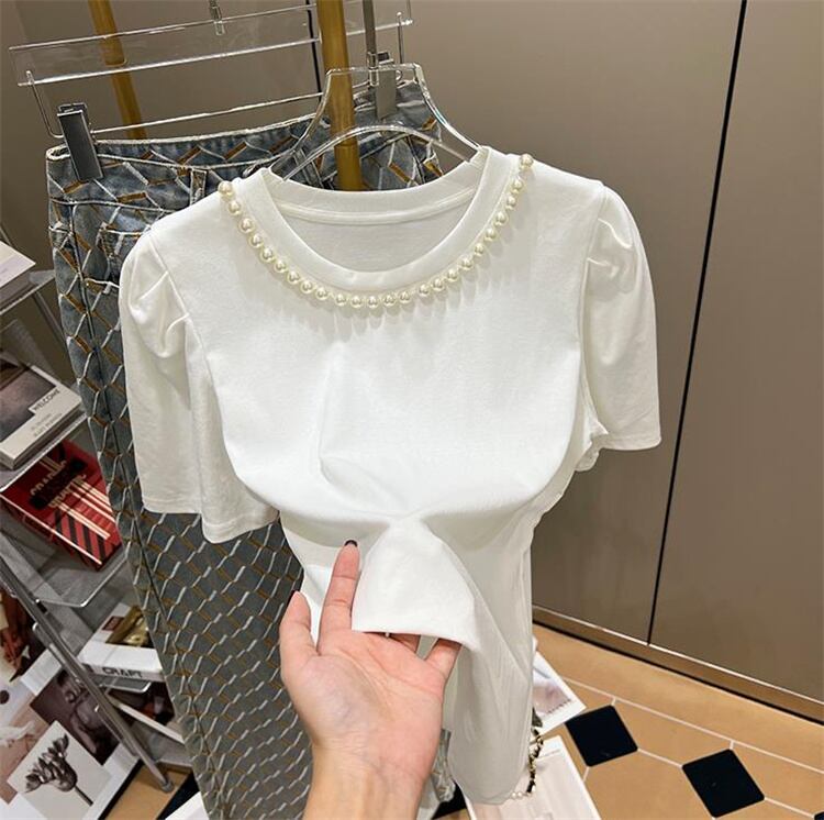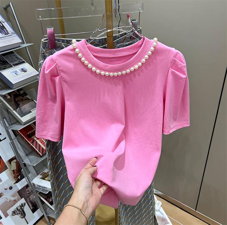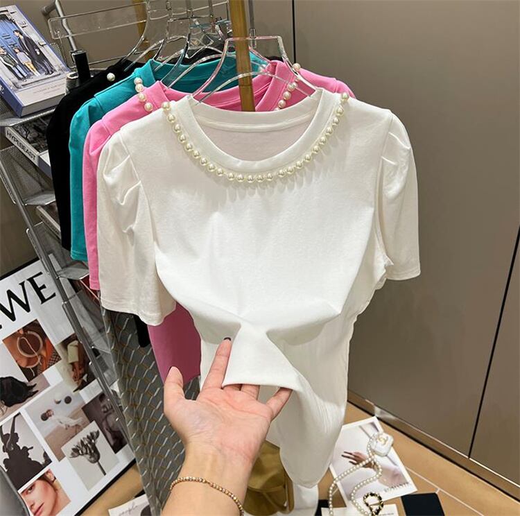 Fashions 限定発売 Tシャツ トップス スリム 大人気 半袖 フォーリンスタイル パフスリーブ