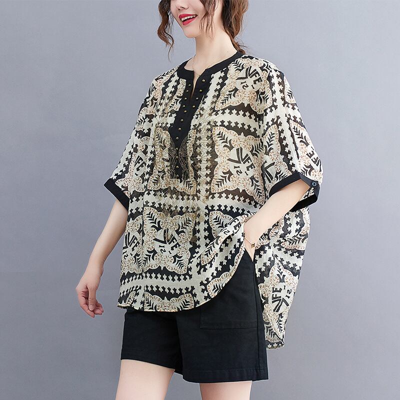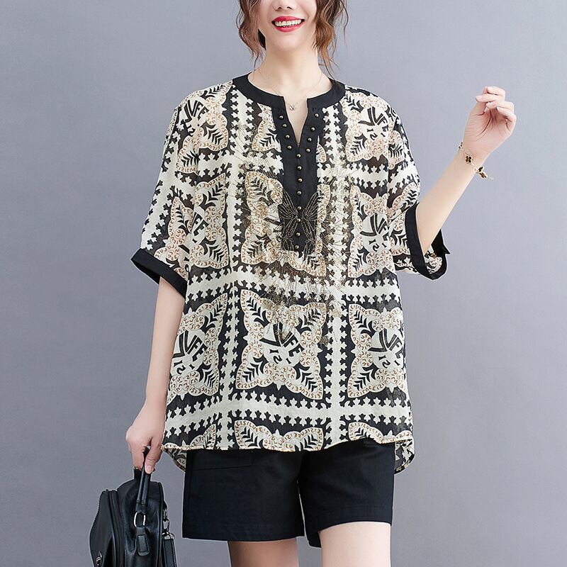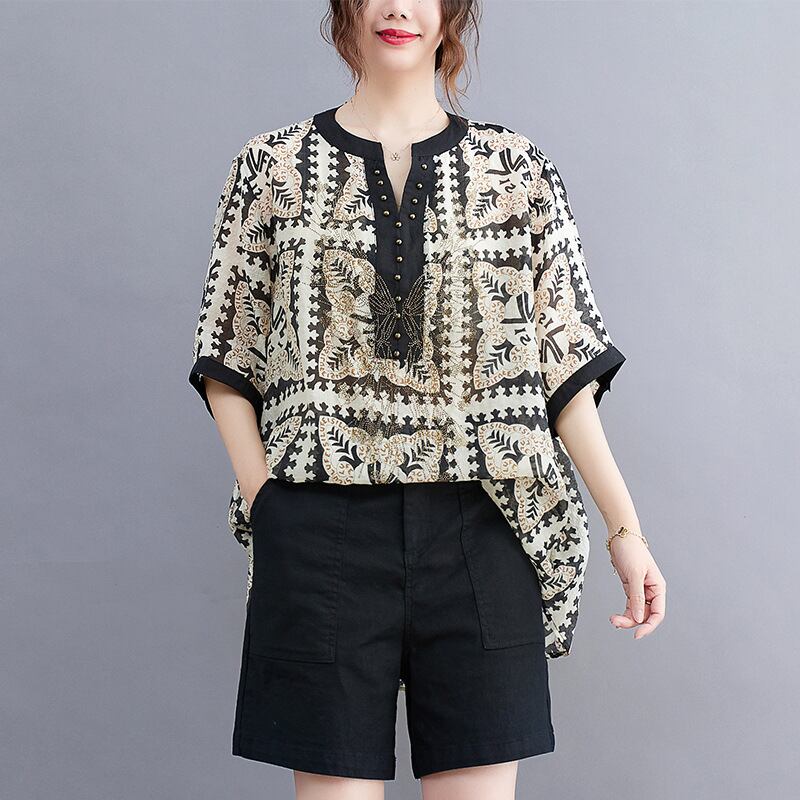 【2022新作】春夏 Vネック半袖花柄Tシャツ トップス カジュアル