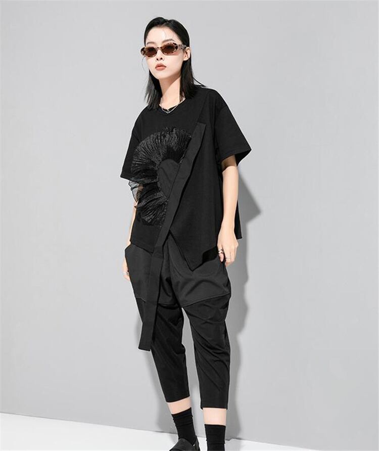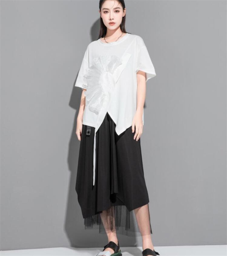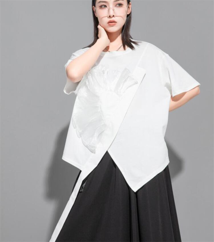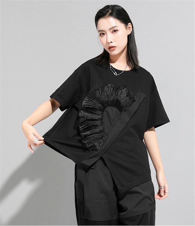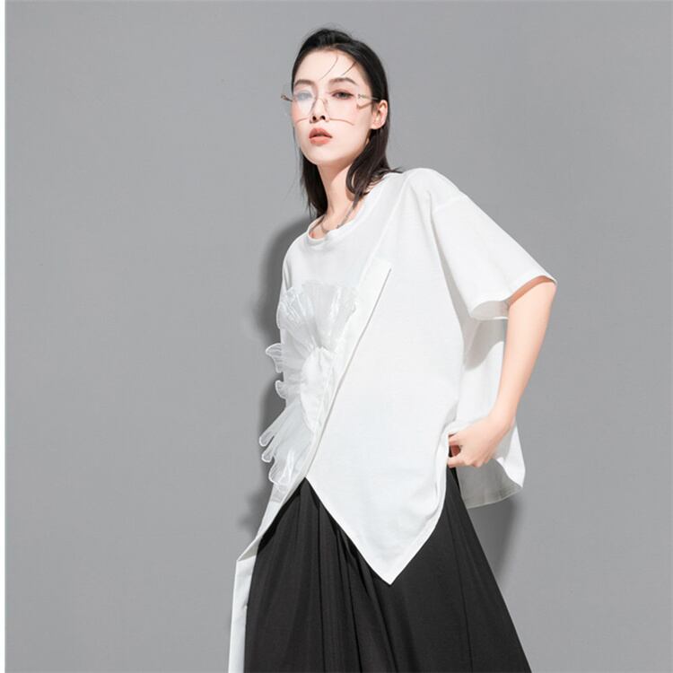 1枚でコーデ簡単 早い者勝ち デザインセンス 大人気 イレギュラー 半袖 トップス 2022夏 新品 Tシャツ
