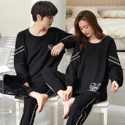 新作登場 パジャマ レディース/メンズ ペアルック 春秋冬 長袖 ルームウェア 綿 カップル 恋人 お揃い オシャレ 上下セット 寝巻き 部屋着 男女 orange