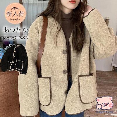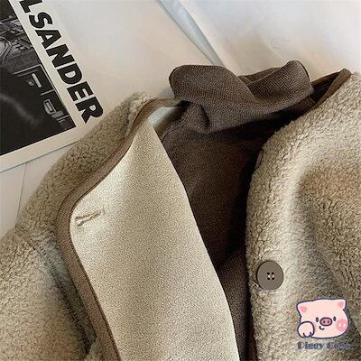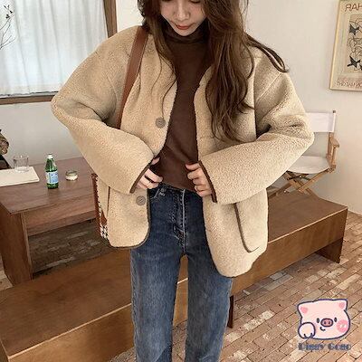 フリースジャケット レディース ボア ブルゾン アウター 羽織り ノーカラー もこもこ トップス ゆったり シンプル 暖か 防寒 秋冬 通勤 おしゃれ