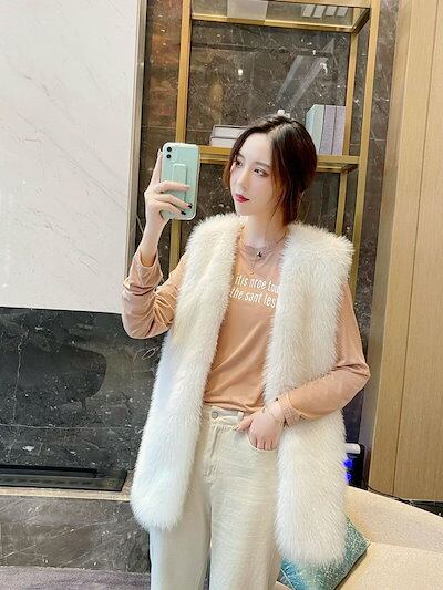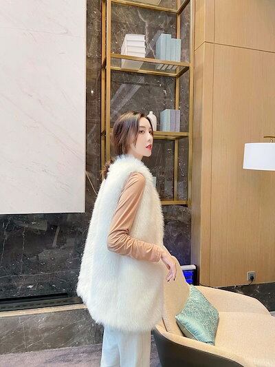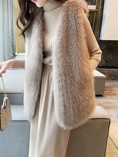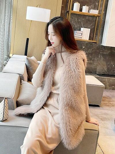2024秋冬新品 ファーベスト 長丈 編み風 着痩せステキ 人工ファー フリース ボア ふわふわ もこもこ 暖かい レディース ベスト アウター メガ割