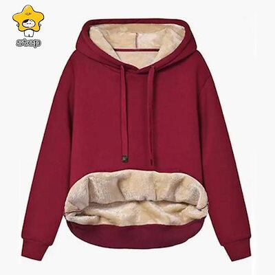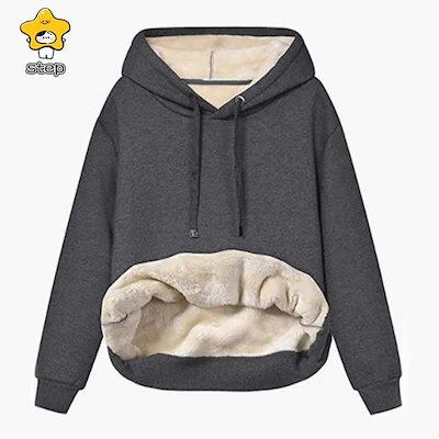 人気裏起毛 パーカー レディース プルオーバー トップス 長袖 裏ボア 防寒 極暖 厚手 ふわふわ もこもこ あったか 暖かい フード付 ボア 大きいサイズ ゆったり
