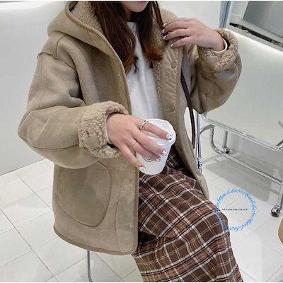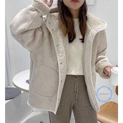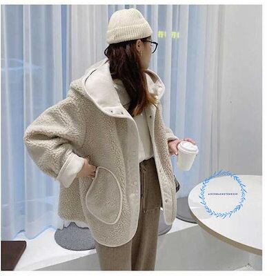 ボアブルゾン ボアジャケット ボアコート レディース ボア 秋冬 カジュアル もこもこ フード付き ファーコート ムートンコート 冬 長袖 ゆったり