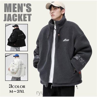 フリースジャケット メンズ ボア ボアジャケット アウター 大きいサイズ 秋冬 立ち襟 厚手 フリース もこもこ ふわふわ 暖かい 20代30代40代
