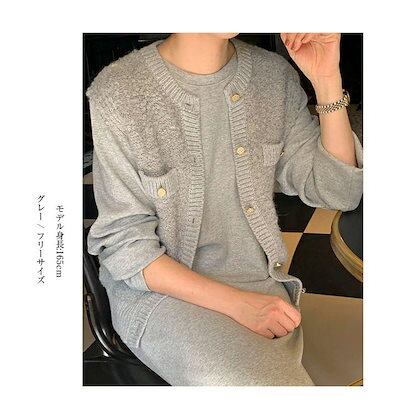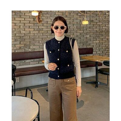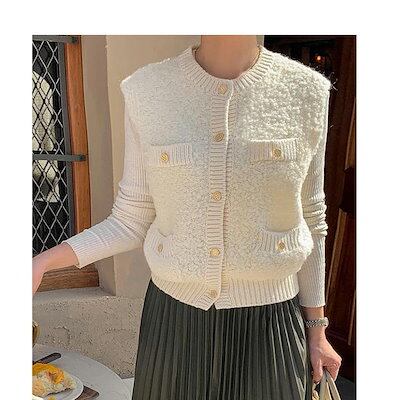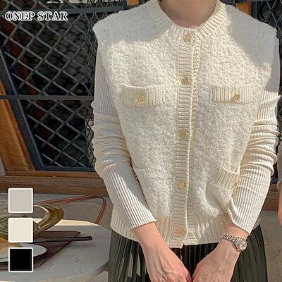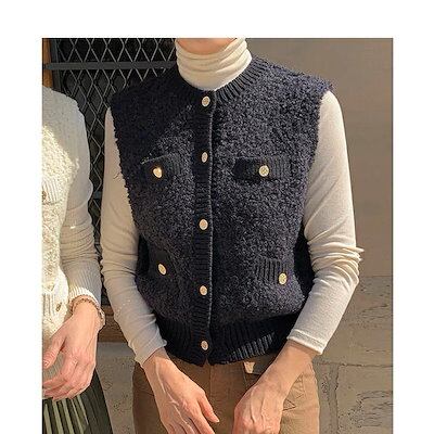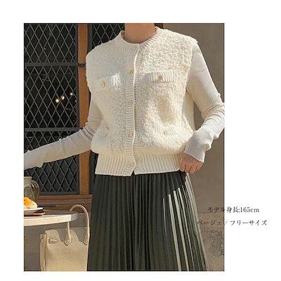 パジャマ 2024 春夏 新作 ファー ベスト トップス ベスト アウター ニット もこもこ ラウンドネック クルーネック ポケット 金ボタン 大人 可愛い レディースファッション 20代 30代 4