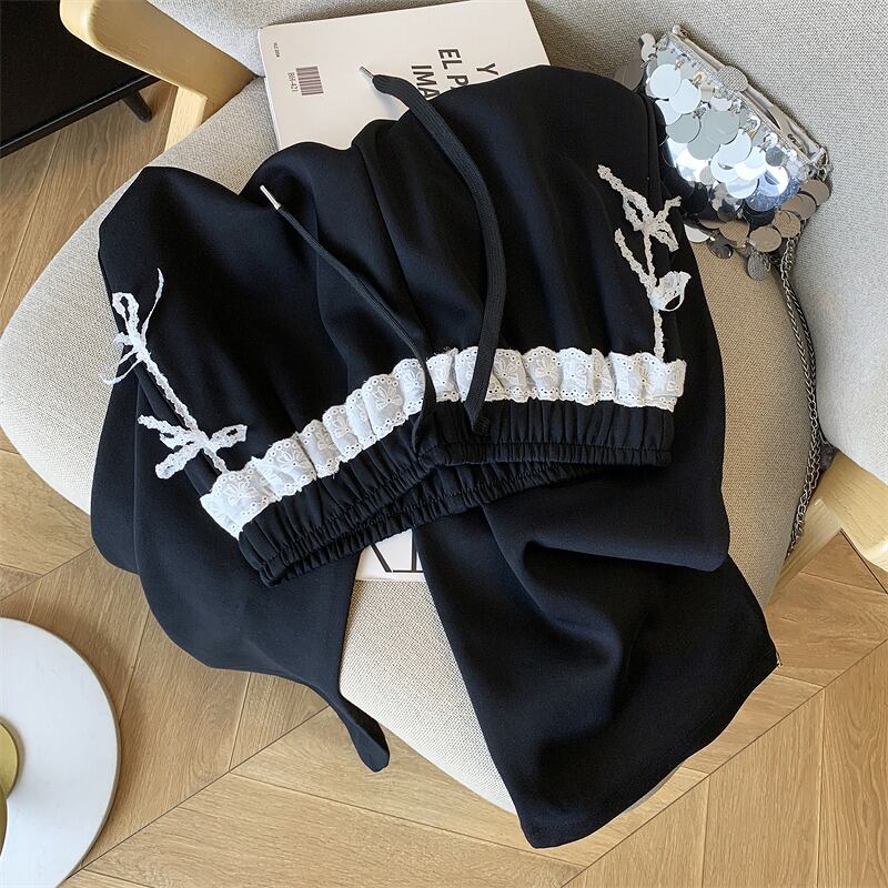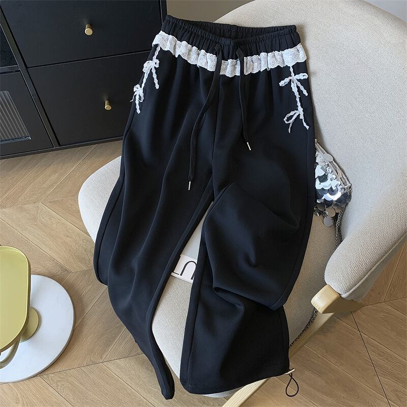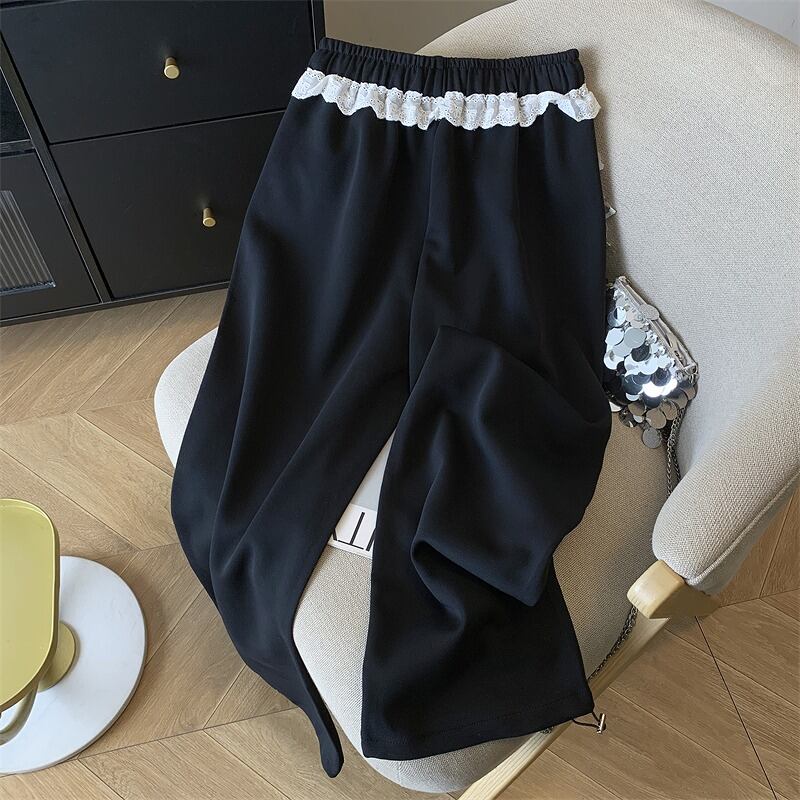 全2色 パンツ 切り替え 体型カバー 着痩せ レース シンプル カジュアル
